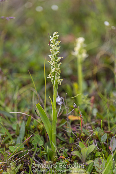 Zaino in spalla e attacco il sentiero che sale il pendio scosceso ove incontro un’altra orchidea spontanea (Platanthera hyperborea).