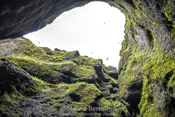 Il sentiero mantiene la linea flessuosa zigzagando fra numerose formazioni rocciose dalle amorfe forme grottesche e mostruose. Sulla sponda occidentale del Canyon Jökulsárgljúfur queste strutture basaltiche sono più numerose rispetto al lato opposto, ma osservando il corso del fiume e le scogliere che lo accerchiano, si possono scoprire altre opere d’arte di geologica fattura che assomigliano a immensi flutti del mare o, con più fantasia, al dorso di un gigantesco serpente di mare che ondeggia nell’oceano. Kirkjan è la costruzione basaltica più famosa in questo ambiente vulcanico, assomiglia a una piccola chiesa, in verità vi dico è una grotta profonda a forma circolare che ricorda una piega di una spessa coperta, il suo tessuto è formato da una trama di dura roccia grigia intrecciata da filamenti simili a colonne esagonali.