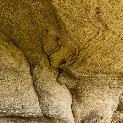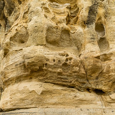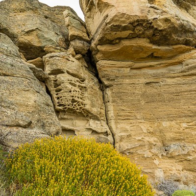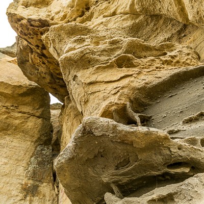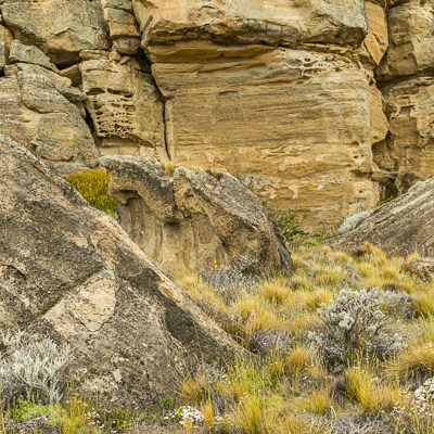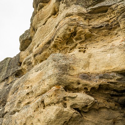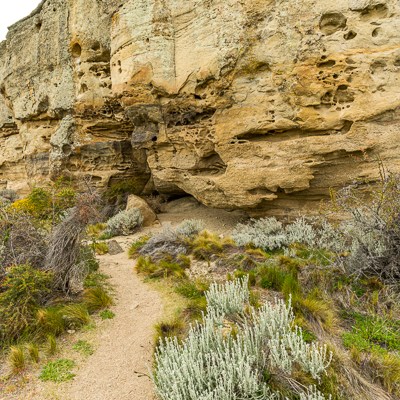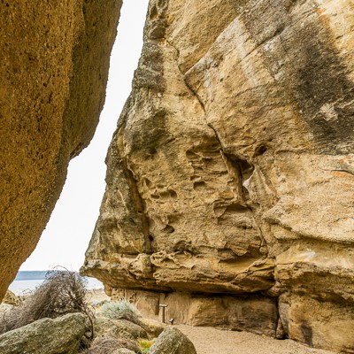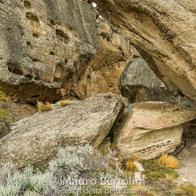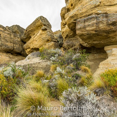 Un’altra bellezza di questo luogo sono le formazioni rocciose. Le intemperie e in particolare modo il vento teso della Patagonia hanno modellato questa falesia ocracea dando vita a una complessa parete di arte astratta.