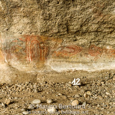 Al confine fra la brulla pampa e le azzurre acque del Lago Argentino, una falesia arzigogolata di roccia ocracea nasconde un tesoro artistico di tempi remoti. Gli anfratti delle pareti verticali sono custodi di diverse pitture rupestri disegnate dalla mano dell’uomo, oltre 4.000 anni fa. Il rosso smunto delle loro tinte risalta debolmente sulle rocce modellate dal vento e dalle intemperie. Negli ultimi millenni hanno lottato passivamente contro le innumerevoli avversità climatiche della Patagonia, arrivando a noi mostrandoci la loro flebile bellezza.